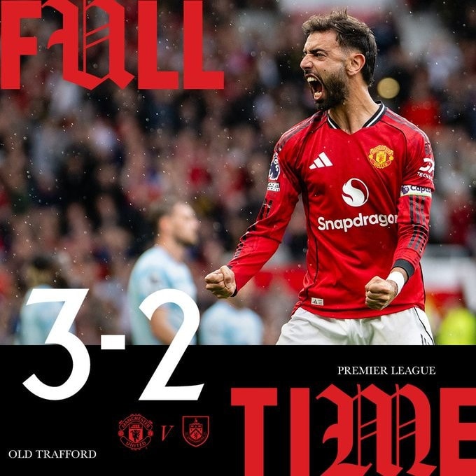 Ở trận đấu giữa MU vs Burnley tại vòng 3 Ngoại hạng Anh 2025/26, đội chủ nhà dù được đánh giá cao hơn và dẫn trước nhưng phải tới bàn thắng của Bruno Fernandes trong phút bù giờ mới có được 3 điểm nhọc nhằn.