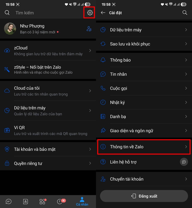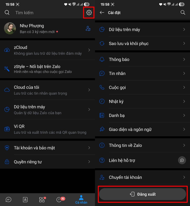 Bạn hãy vào mục Cài đặt trong Zalo > Tiến hành đăng xuất tài khoản > Đăng nhập lại để làm mới kết nối và khắc phục lỗi, giúp cuộc gọi hoạt động ổn định hơn nha.