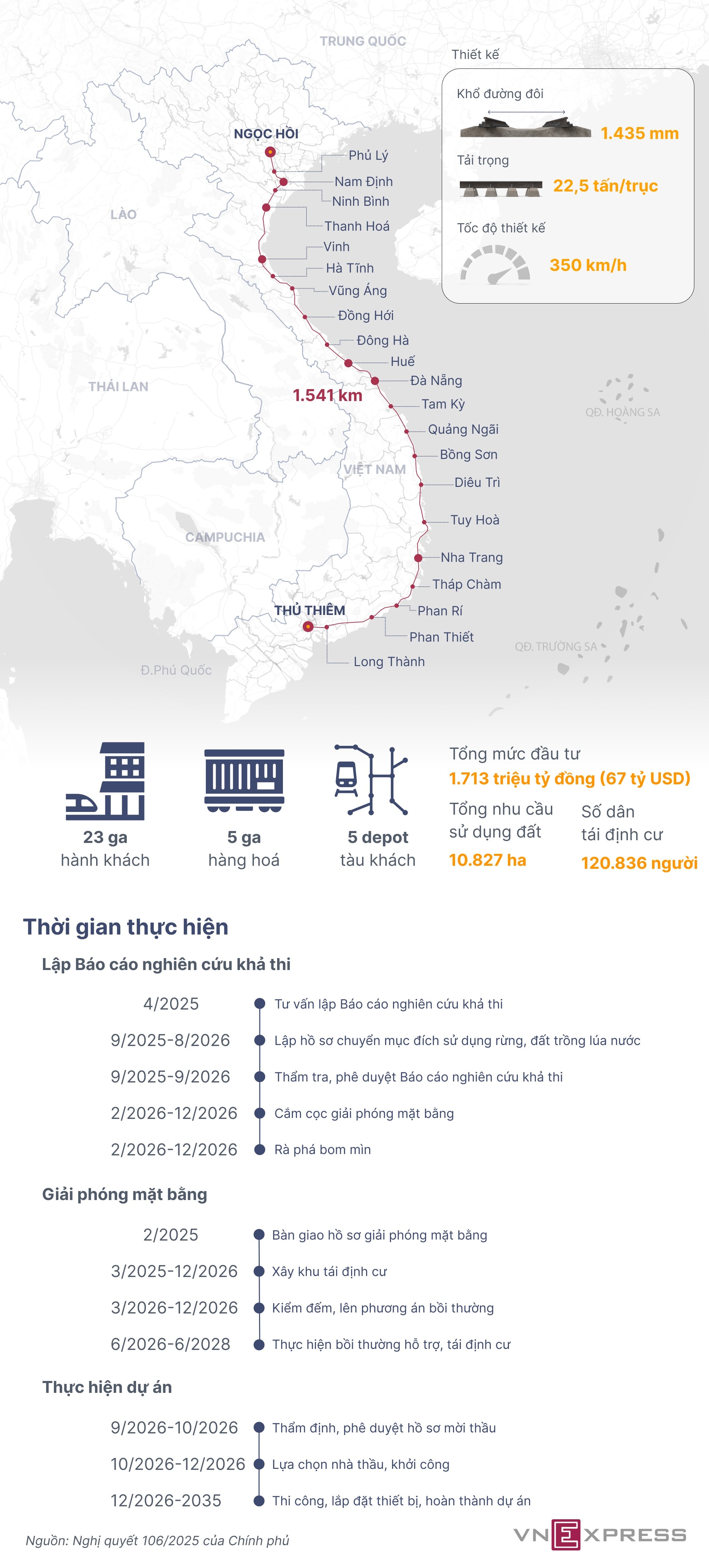 Chính phủ đặt kế hoạch khởi công đường sắt tốc độ cao Bắc Nam vào tháng 12/2026 và hoàn thành dự án vào năm 2035.