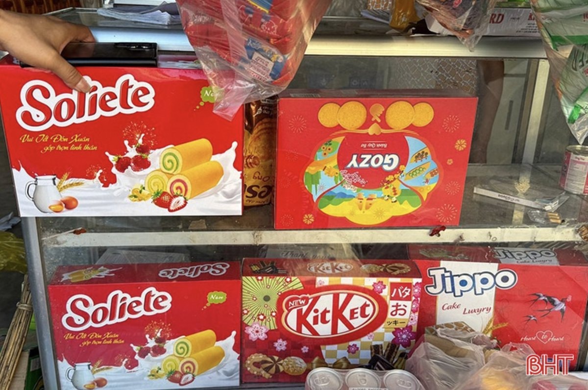 Đơn cử, ngày 9/7, khi ghé một quán tạp hóa ở xã Đông Kinh (thuộc huyện Thạch Hà cũ) để hỏi mua bánh kẹo, điều khiến chúng tôi ngạc nhiên là cả 4 loại bánh kẹo được bày bán ở đây là Gozy, Soliete, KitKet, Jippo… giá từ 25.000 - 30.000 đồng, có tên gọi, hình thức, mẫu mã bên ngoài giống một số loại bánh thương hiệu nổi tiếng khác như: Cosy, Solite, Kitkat, Tipo… với giá bán trên thị trường gấp 2 - 3 lần.