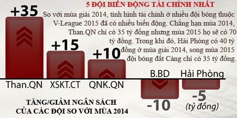 Có lẽ ngay chính NHM đất Cảng cũng không thể hình dung nổi, đội bóng Hải Phòng lại có sự đi xuống khó tin về tài chính! Giai đoạn 2008-2013, Hải Phòng nổi tiếng về sự chịu chi với những khoản tiền khoảng 50-60 tỷ đồng/năm. Đây là cái tên đáng nể trên thị trường chuyển nhượng cũng như ở khía cạnh chi trả lương, thưởng. Thế nhưng, V-League 2014 và hiện nay, đội bóng đất Cảng đối mặt nhiều khó khăn về tài chính. Sau khi Vicem không còn tài trợ cho đội bóng nữa, Hải Phòng chuyển đổi cơ chế hoạt động và gặp nhiều khó khăn trong việc tìm kiếm nguồn tiền. Đến nay, họ vẫn đang gồng mình để có được 35 tỷ đồng, đúng như yêu cầu của BTC V-League 2015.