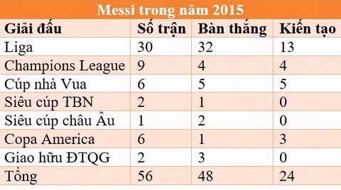 Đến mùa Hè, Messi đem về Siêu cúp châu Âu cho Barca với hai cú sút phạt tuyệt đẹp vào lưới Sevilla. Nếu cùng Barca giành nốt FIFA Club World Cup vào tháng 12 này, Messi sẽ khép lại năm 2015 theo cách tuyệt vời nhất có thể.