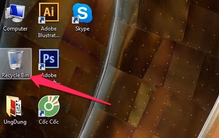 Bước 1: Chọn Recycle Bin xuất hiện trên màn hình máy tính.