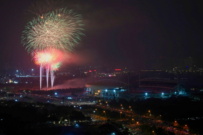 0h00 giờ Hà Nội: Việt Nam chính thức bước sang năm mới 2026. Tòa nhà Saigon Marina IFC chạy đèn led nghệ thuật cùng màn pháo hoa tầm thấp, điểm nhấn của TP.HCM trong dịp chào mừng năm mới 2026. Ảnh: Hoài Bảo. Đúng 0h00, TP.HCM, thủ đô Hà Nội và các thành phố trên khắp Việt Nam tưng bừng chào đón năm mới 2026. Ảnh: Hoài Bảo. Những loạt pháo đầu tiên đồng loạt khai hỏa, thắp sáng bầu trời phường Vũng Tàu bằng sắc màu rực rỡ. Pháo hoa hòa quyện cùng ánh sáng từ 143 trụ tháp Tam Thắng, tạo nên khung cảnh ngoạn mục, khiến đám đông không ngớt trầm trồ. Ảnh: Linh Huỳnh. Hàng chục nghìn người đổ về khu vực trung tâm Hà Nội, TP.HCM và các thành phố để chờ ngắm pháo hoa mừng năm mới 2026, trong khi nhiều người khác lên đường trở về sum họp bên gia đình trong dịp đầu năm mới. Ảnh: Đinh Hà. 0h giờ Hà Nội: Người dân hào hứng theo dõi màn pháo hoa mừng Ngày đầu năm mới tại thành phố Quezon, vùng đô thị Metro Manila, Philippines. Ảnh: Reuters. 0h giờ Hà Nội: Pháo hoa bừng sáng trên bầu trời thủ đô Bangkok (Thái Lan), đánh dấu khoảnh khắc chuyển giao sang năm 2026. Ảnh: Reuters.