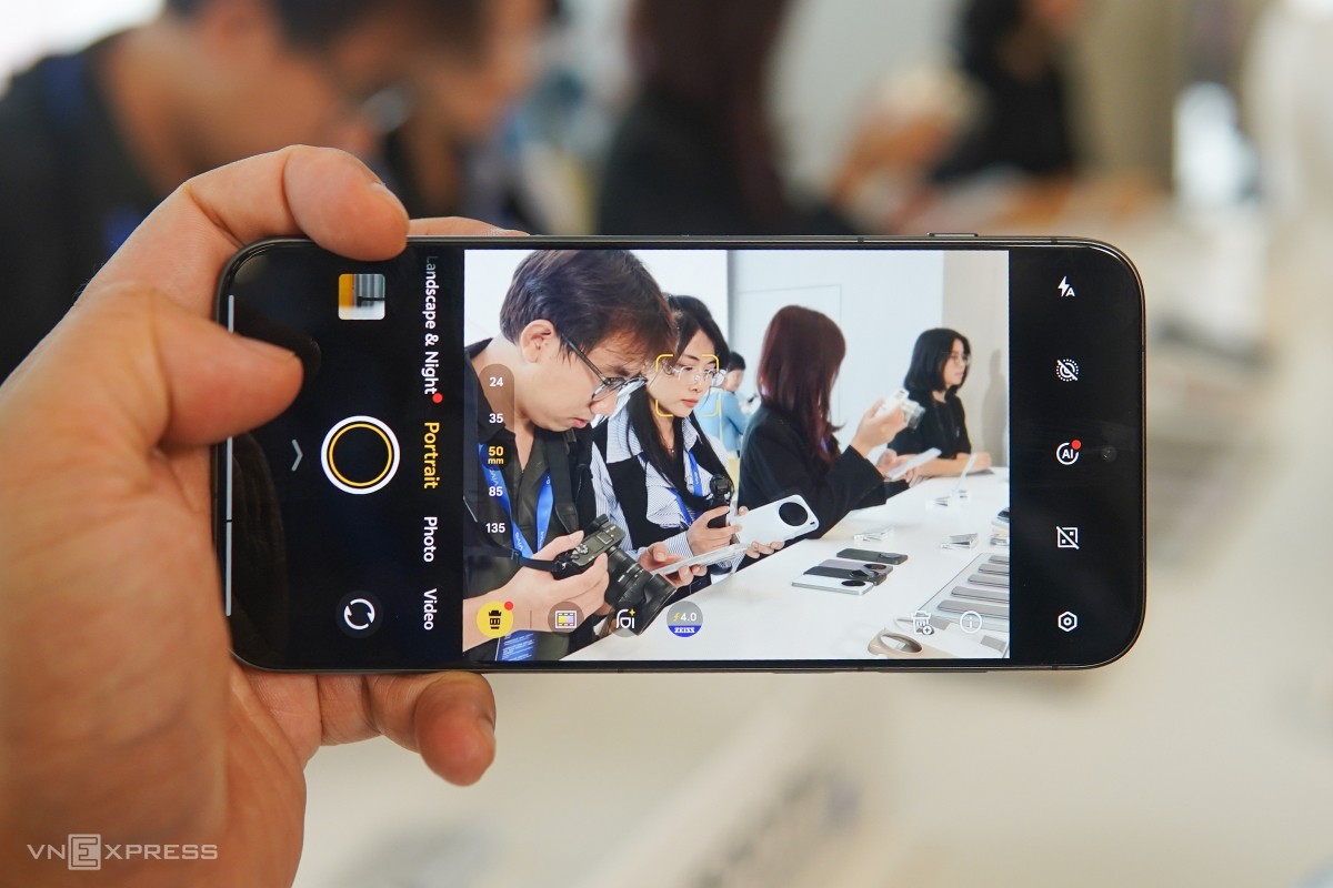 Một tính năng khác được cải thiện là chụp chân dung với tùy chọn độ phân giải 200 megapixel. Ở chế độ này, thiết bị mất khoảng 3-5 giây để xử lý sau khi chụp, nhưng cho phép người dùng có thể zoom chi tiết vào khuôn mặt. Trong hình là một người đứng cách xa hai mét, nhưng vẫn có thể quan sát rõ từng sợi tóc.