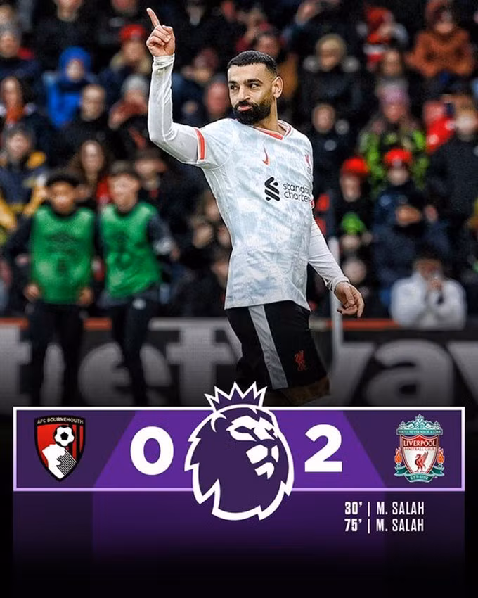 Dù Liverpool vẫn chơi áp đảo sau đó nhưng phải tới phút 75, họ mới có bàn thắng thứ 2. Người ghi bàn vẫn là Salah. Tiền đạo người Ai Cập (178 bàn) đã vượt qua Frank Lampard (177 bàn) để leo lên vị trí thứ 6 trên BXH các chân sút tốt nhất lịch sử Premier League. Tính riêng ở mùa 2024/25, Salah hiện đã có 21 bàn.