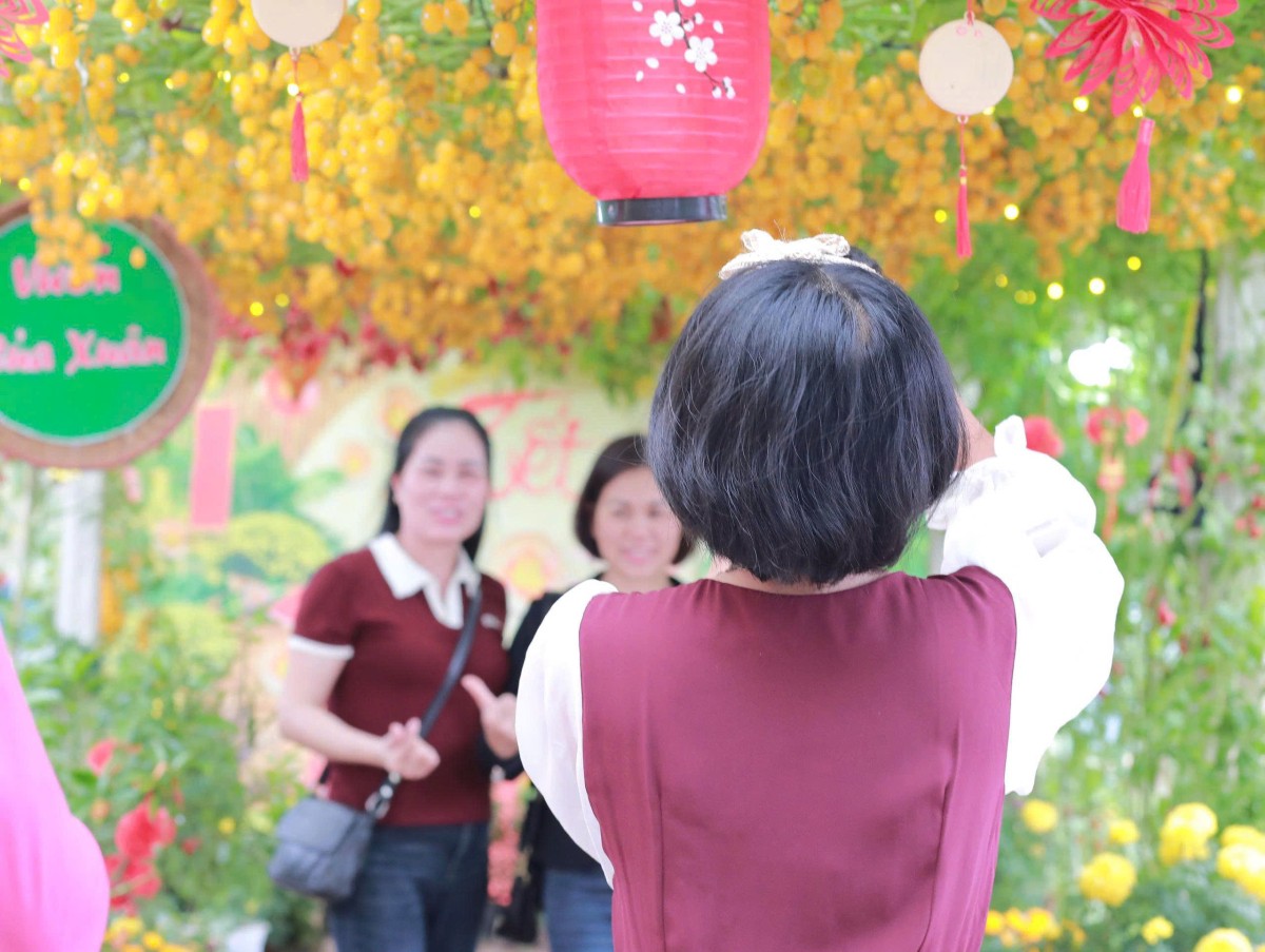 Ban đầu chị thông báo trên trang cá nhân sẽ mở cửa đón khách từ mùng 4 Tết, nhưng khu vườn "thất thủ" từ sáng mùng 2. "Tôi đang ở quê, xem qua camera thấy dòng người kéo đến cổng đông nghẹt. Không đành lòng để khách lặn lội đường xa phải về tay không, tôi quay trở lại ngay trong buổi chiều", chị Xuân nói.