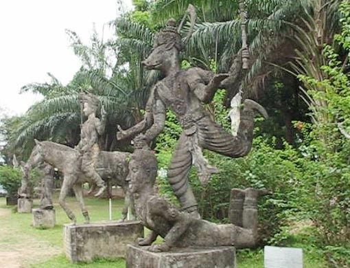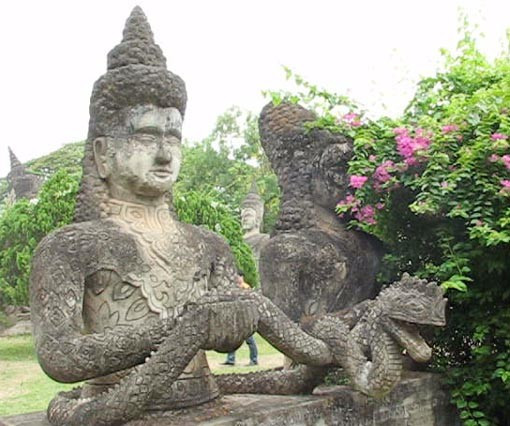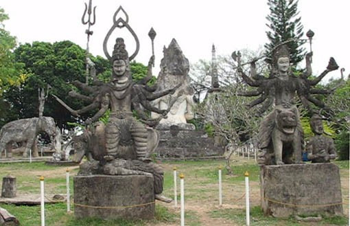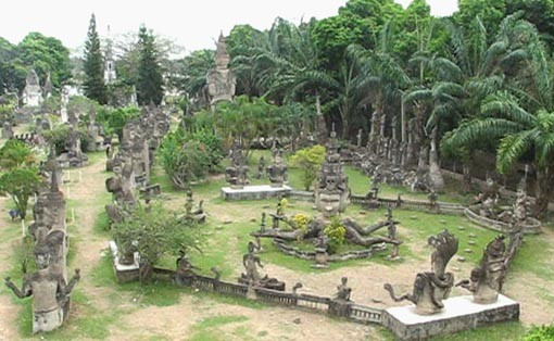 Vườn Phật, còn gọi là Vat Xiêng Khuôn là công trình văn hóa -tôn giáo độc đáo của đất nước Phật giáo. Từ thủ đô Viêng Chăn, đi theo đường Thađưa 25 km, qua cầu Hũu nghị Lào Thái 3m về phía tay phải, Vườn Phật nằm bên bờ sông Mê Kông. Vườn được xây dựng năm 1957 bằng xi măng với hàng trăm bức tượng Phật và và các vị thần đủ hình dáng, tư thế, gương mặt.