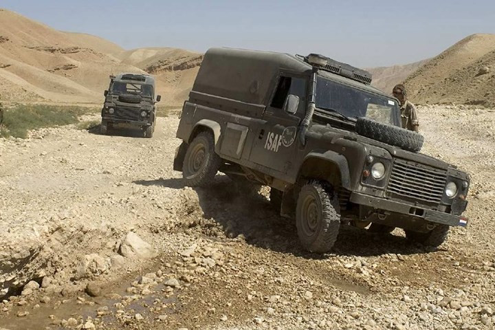 Hình ảnh xe quân sự địa hình Land Rover Defender do Anh sản xuất.