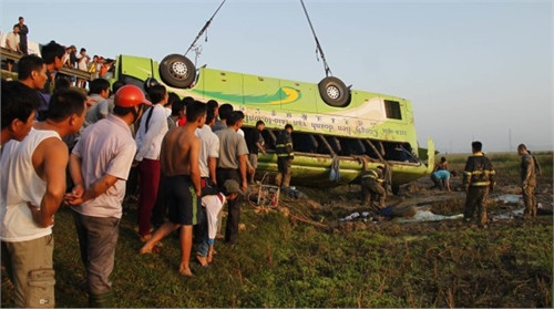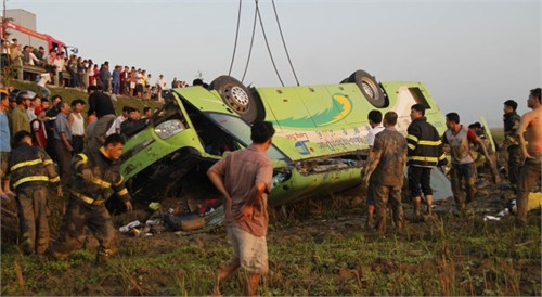 Tại hiện trường, chiếc xe khách thuộc Công ty vận tải Lạng Sơn bị lật nhào xuống ruộng sâu cách chiều cao mặt đường 5m. Lực lượng cứu hộ và hàng trăm người dân vây quanh chiếc xe. Gần 10 xe cấp cứu của Bệnh viện đa khoa 115 Nghệ An rú còi liên tục chờ đưa từng nạn nhân đi cấp cứu.