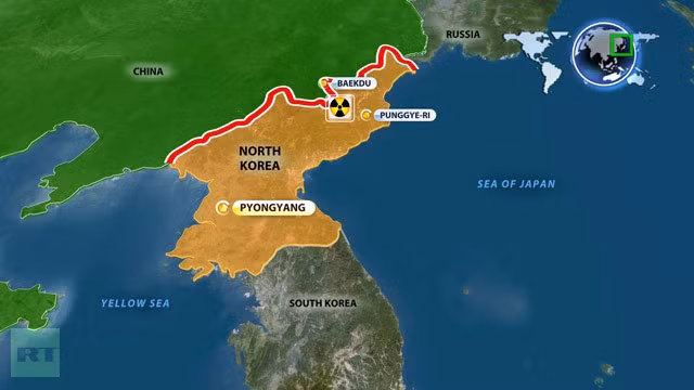 Vị trí bãi thử hạt nhân Punggye-ri của Triều Tiên - Ảnh chụp màn hình RT